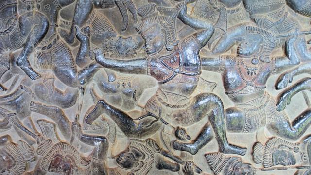 Die Mauern sind mit Reliefs verziert.