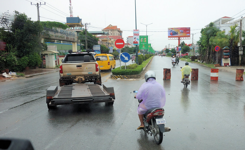Das ist normal in Asien: Die Straße ist gesperrt, jeder kümmert sich selbst wie er weiterkommt, auch auf der Gegenfahrbahn ist Platz.