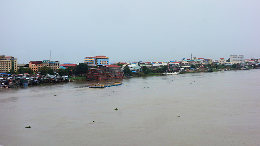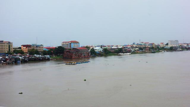 Das ist der Tonle Sap Fluss, der aus dem Tonle Sap See hier in Phnom Penh in den Mekong fließt.