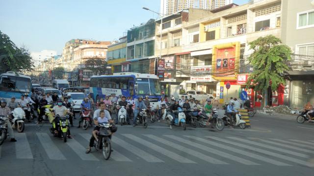 Die Verkehrshölle von Phnom Penh am Morgen..