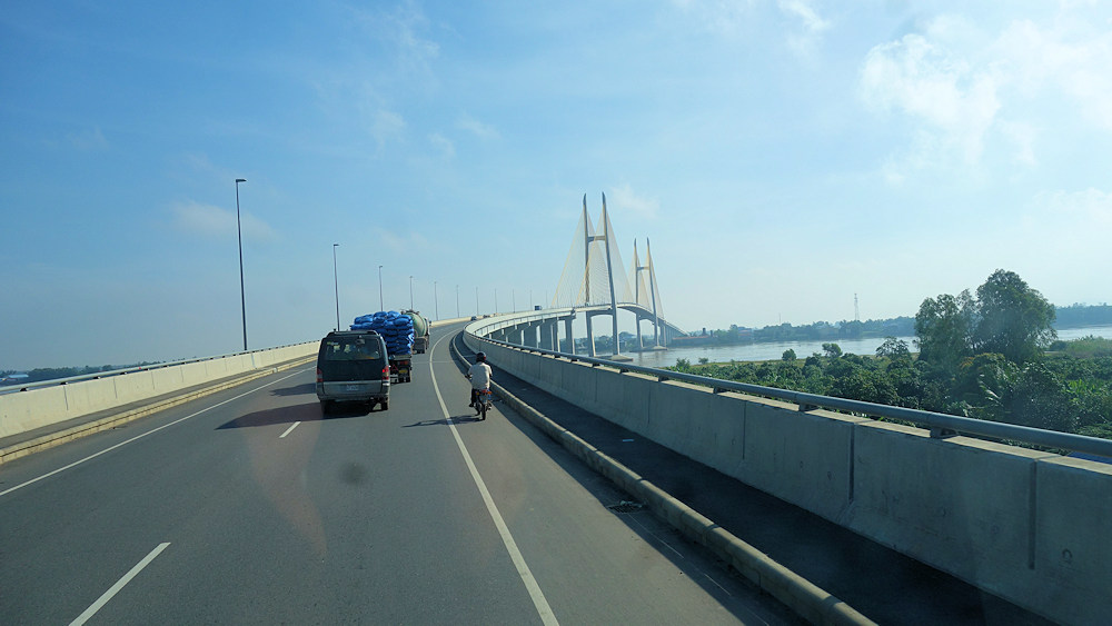 Moderne Brücke über den Mekong auf der Fahrt nach Vietnam.