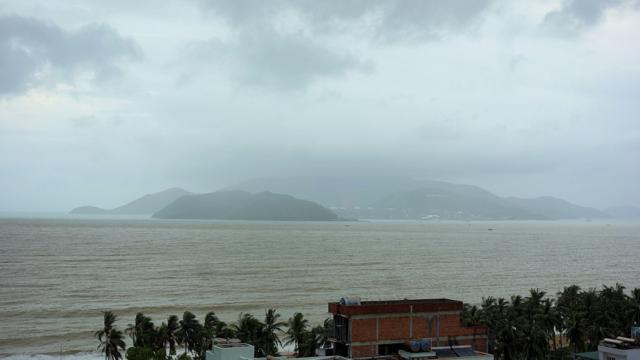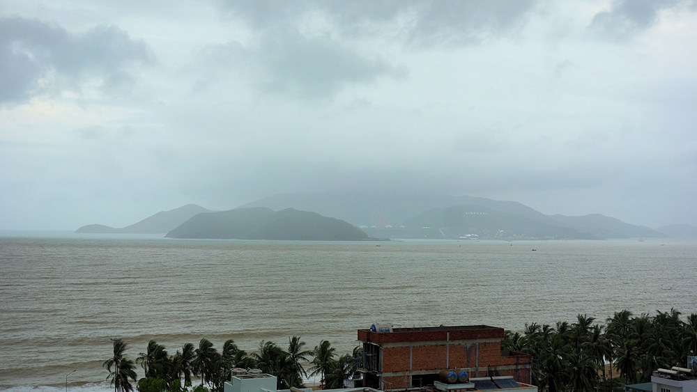 Das ist der Blick vom Hoteldach in Nha Trang auf das Meer. Das Wetter ist scheußlich.