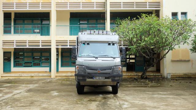 Ganz orginell: Wir parken im Schulhof (das Hotel liegt auf der anderen Straßenseite).
