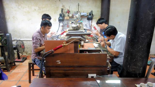 Handwerker fertigen Kunstgegenstände...
