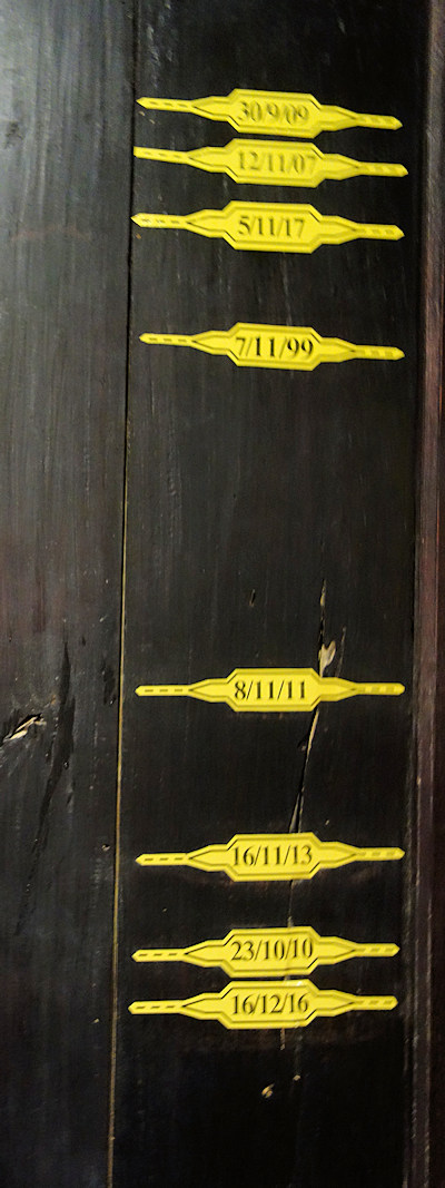 Hochwassermarken im Haus, man beachte die 3. von oben: 05.11.2017, das war derTaifun.