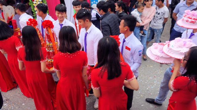 An der Straße wieder ein Empfangskomitee für Hochzeitsgäste-mitten im Verkehr.