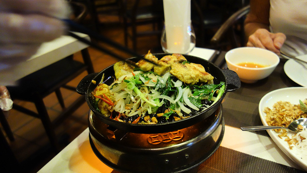 Cha Ca La Vong ist das Hanoi typische Fischgericht. Gegrillter Fisch mit allerlei Zutaten.