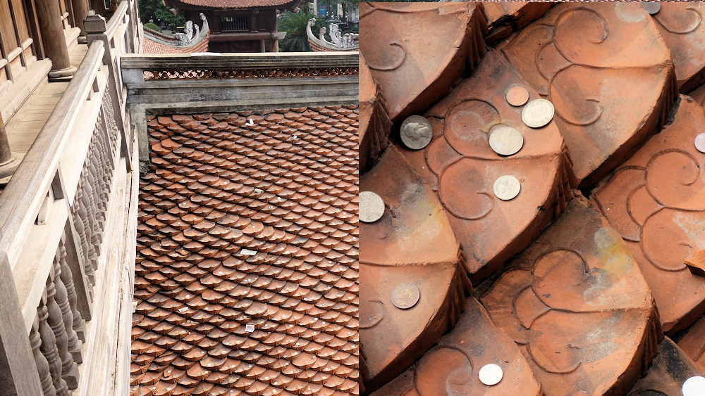 Gläubige werfen gerne Münzen auf das Dach der letzten Pagode. Soll mal wieder Glück bringen.