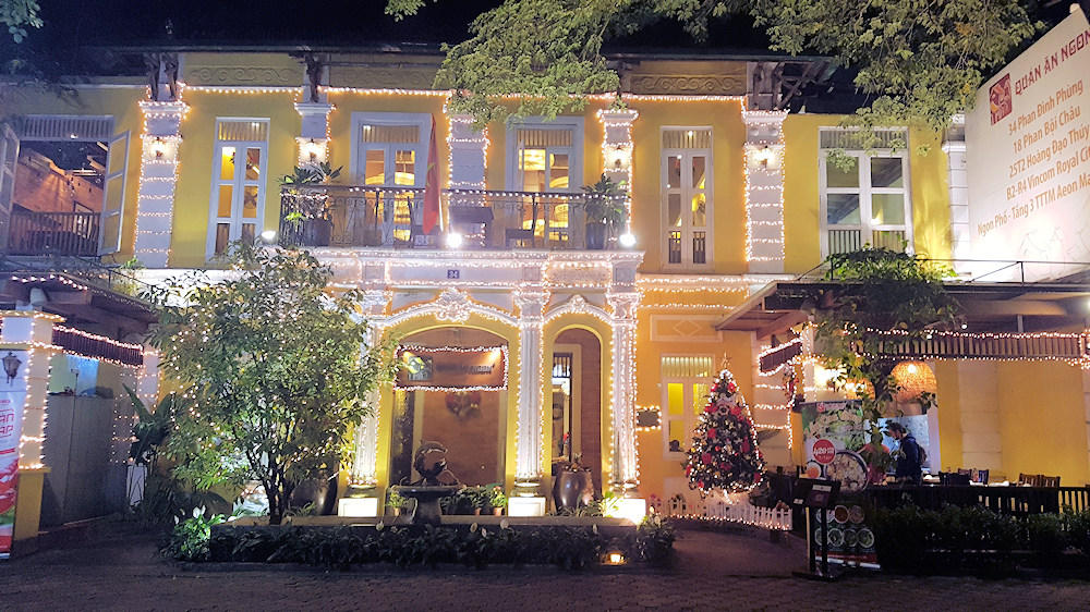 In diesem festlich beleuchtetetn Restaurant speisten wir zu Abend.
