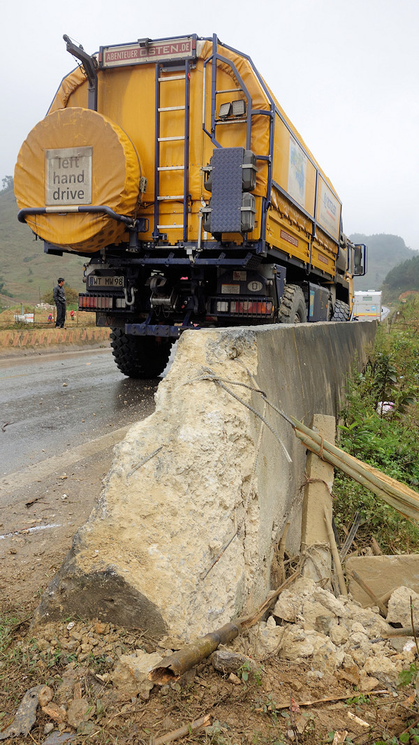 Wäre das Fahrzeug mit dem entgegenkommenden frontal kollidiert, hätte es wahrscheinlich Tote gegeben. So hat Mani sein Fahrzeug geschrottet um das Lebend der zwei Vietnamesen zu retten.