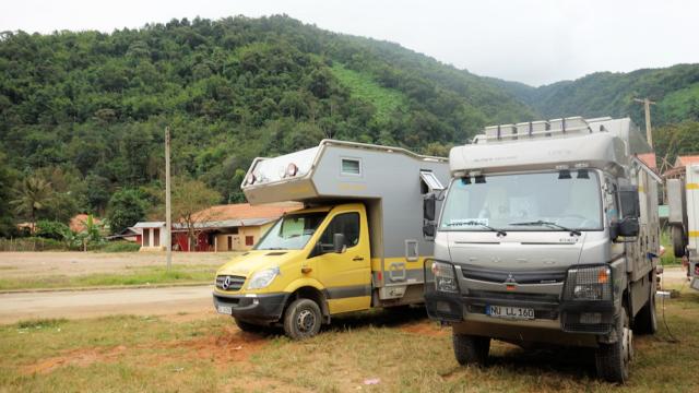 Unser Stellplatz in Muong Khoua, auf der, wir würden sagen, Festwiese.