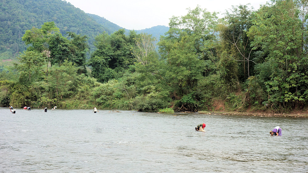Den ganzen Tag stehen Frauen im Wasser und sammeln eine Art Seegras.