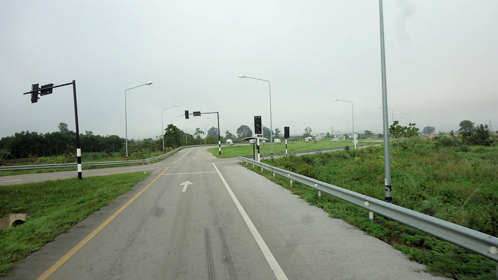 Nach der Brücke wird erst mal die Spur gewechselt: Thailand hat Linksverkehr.