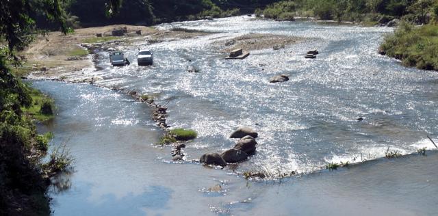 Autowäsche im Fluß.