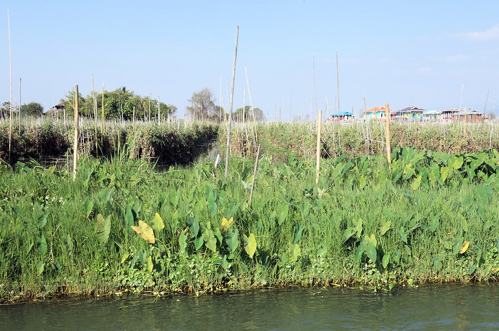 Im Gegensatz zu den Häusern, die auf Pfählen stehen, sind die schwimmenden Gärten tatsächlich schwimmend. Tomaten werden am häufigsten angebaut.