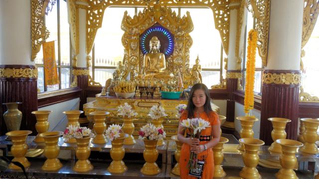 Der Schrein, mit den vielen Lotusblumen als Opfergaben.