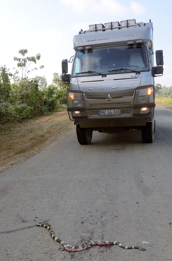 Schade, diese Krait-Schlange hat es nicht geschafft. Kraits verursachen die meisten tödlichen Unfälle mit Schlangen in Südostasien.