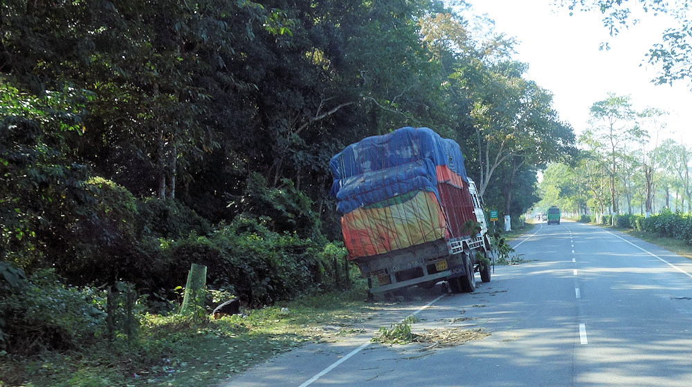 Wie in allen Dritte-Welt-Ländern sind Äste und Zweige was bei uns Warndreicke und Blinklichter sind.