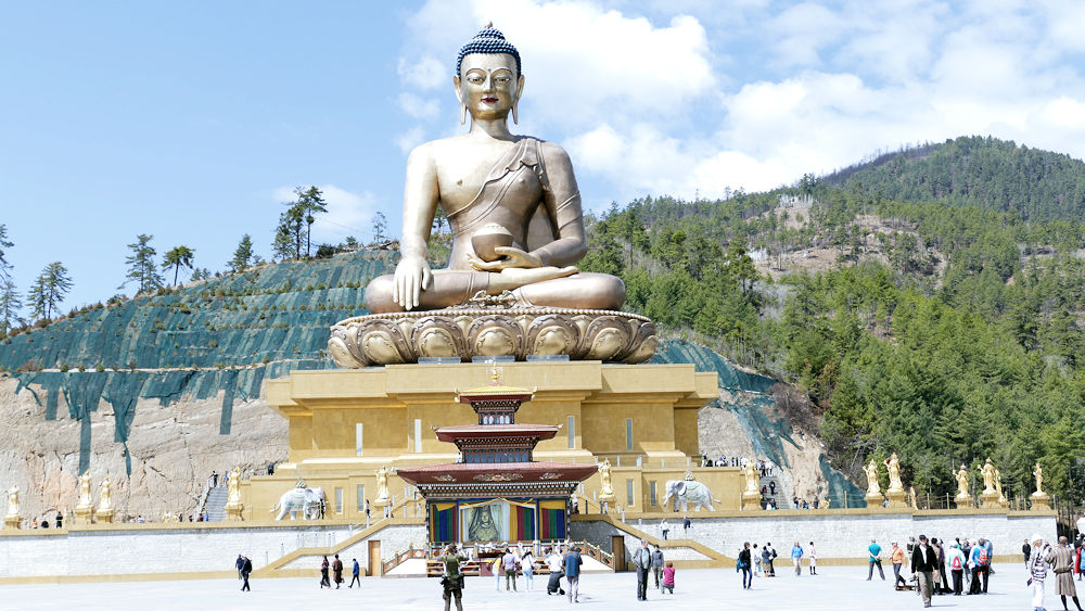 Die gigantische Buddhastatue über Thimphu soll über 50 Mio. US$ gekostet haben. In unseren Augen natürlich nicht so gut angelegtes Geld. Aber der Buddhismus und der Staat sind in Bhutan Eins.
