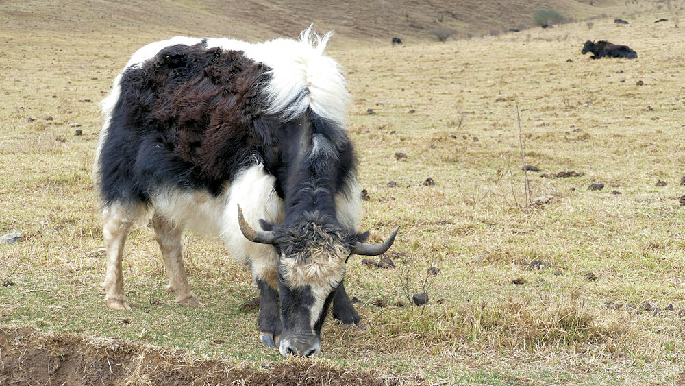Auf einer Wiese im Talgrund konnten wir parken. Auf den Besuch des Klosters Gangteng, das auch ein bedeutendes buddhistisches Kulturdenkmal ist, haben wir verzichtet.
