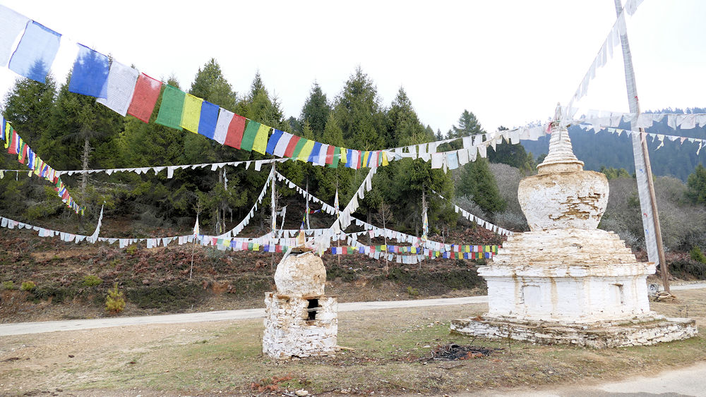 Das Tal gilt als eines der schönsten Täler Bhutans, zeigte sich aber heute wolkenverhangen. Die Schwarzhalskraniche, die hier den Winter verbringen, haben wir versäumt. Sie sind bereits wieder über den Himalaya nach Tibet geflogen.