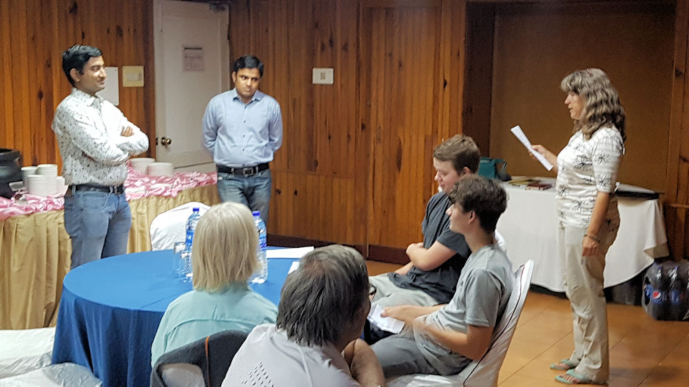 Am Abend wurden bei einem indischen Essen noch unsere Guides Surjat und Sumer offiziell verabschiedet. Sie begleiten uns aber morgen noch zur Grenze. Insgesamt 111 Tage haben sie uns durch Indien geführt und vieles organisiert. Von Reparaturwerkstätten bis zu Arztbesuchen, von SIM-Karten bis zu speziellen Einkäufen. Verhandlungen mit Polizisten und Behörden waren ebenfalls notwendig.