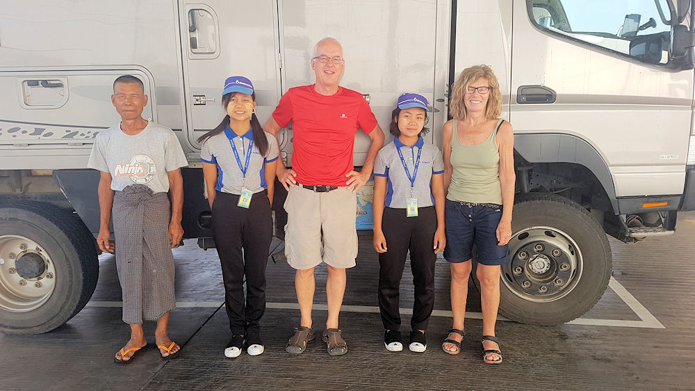 In Yangon sollten unsere Guides auch eine Werkstatt ausfindig machen,die unser Problem lösen sollte. Aber nichts war erledigt und so fuhren wir selbst zum FUSO-Service, der aber keine feste Werkstatt hat, sondern einen mobilen Service. Für morgen haben wir dann einen Termin ausgemacht am Hotel an dem wir stehen. Wir sind gespannt.