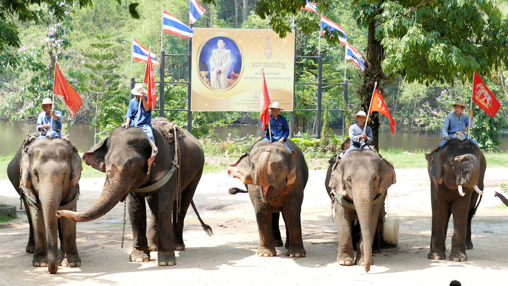 Da Elefanten und ihre Mahouts heute keine Arbeitsplätze mehr bekommen, werden sie hier, sozusagen im Showbusiness, beschäftigt. Sie zeigen, wie früher das Holzrücken gemacht wurde, aber die meiste Zeit zeigen sie kleine Kunststücke in der vielleicht einstündigen Show.