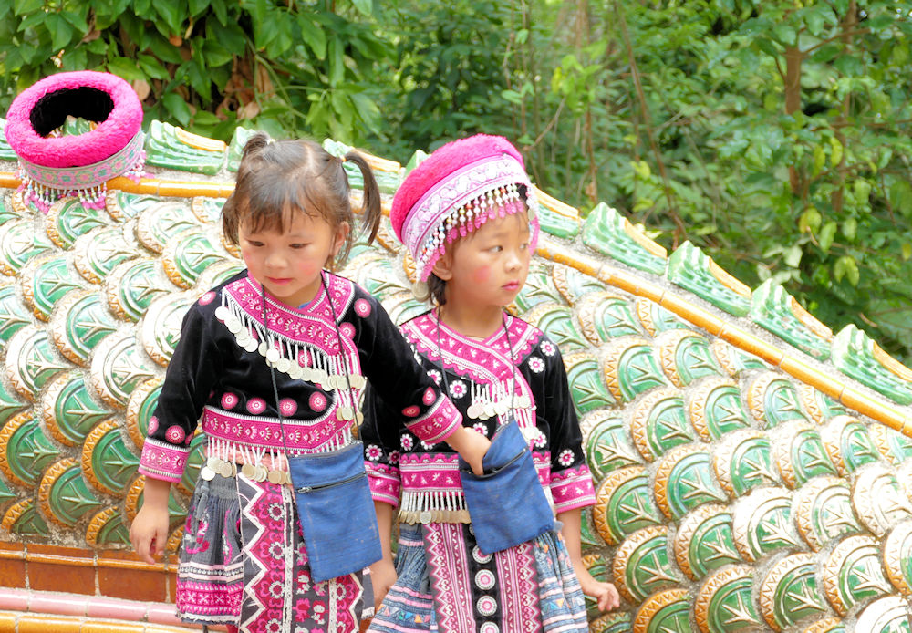 Vielmehr haben wir eine Art lebendes Dorfmuseum besucht. Dort "wohnen" einige Stämme der Bergvölker, die ansonsten in den Bergregionen nördlich und westlich von Chiang Mai beheimatet sind. Sie stammen ursprünglich zum Teil aus Birma und zum Teil aus Yunnan (China). Insbesondere die Padong Karen, mit ihren Giraffenhalsfrauen und die Kayaw Karen mit den übergroßen Ohrläppchen, sind die Attraktion. Gut, es ist wie im Zoo, wenn auch ohne Käfige, wenn wir durch das Dorf laufen und die dort arbeitenden Frauen (Souvenirverkauf, Weben usw.) anschauen und fotografieren. Aber im Gegenzug können sie ihre Handarbeiten und andere handwerklichen Erzeugnisse verkaufen.