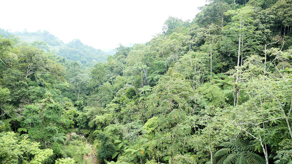 Durch schönen Regenwald auf einer schönen Straße sind wir hochgefahren und wurden dann durch die landwirtschaftliche Nutzung der Höhen doch überrascht. Die vielen Gewächshäuser aus Plastikfolien sind nicht schön. Aber hier wird intensiv Gemüse, Tee und Blumen angebaut. Pflanzen die im tropischen Tiefland nicht wachsen.
