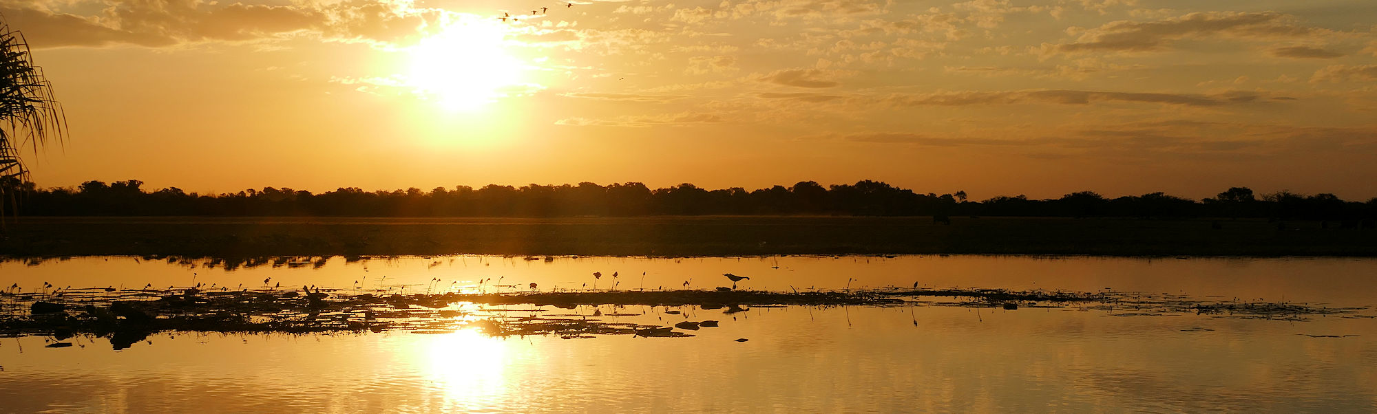 Wir sind, vom südlichen Parkende kommend, bis Cooinda gefahren, das am South Alligator River liegt. Alligator? Der erste Entdecker im 19. Jahrhundert meinte die Krokodile seien Alligatoren. An der Cooinda Lodge haben wir geparkt, die Parkausweise gekauft und die Sunset Tour auf dem Yellow Water Billabong gebucht. So heißt der Abschnitt des South Alligator River hier.