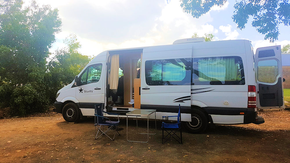 04.08.2018, Coomalie Creek RV Park, Northern Territory, AustralienDie Übernahme des Miet-Wohnmobils war schnell erledigt. Eine eingewanderte Schweizerin machte das Paperwork und die Einführung, die auch rasch erledigt war, da es nicht viel zu erklären gab.
