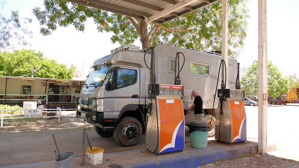03.10.2018, Daly Waters, Northern Territory, AustralienHeute morgen in Katherine haben wir uns noch ausgiebig versorgt, weil wir die nächsten Tage ins Outback fahren wollen. Erfahrungsgemäß steigen ja die Preise, je kleiner und abgelegener der Ort ist.
