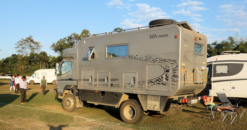 Auf einem Rasenplatz bei Bongaigaon parken wir für die Nacht. Wie imer sind wir gleich von Neugierigen umlagert.