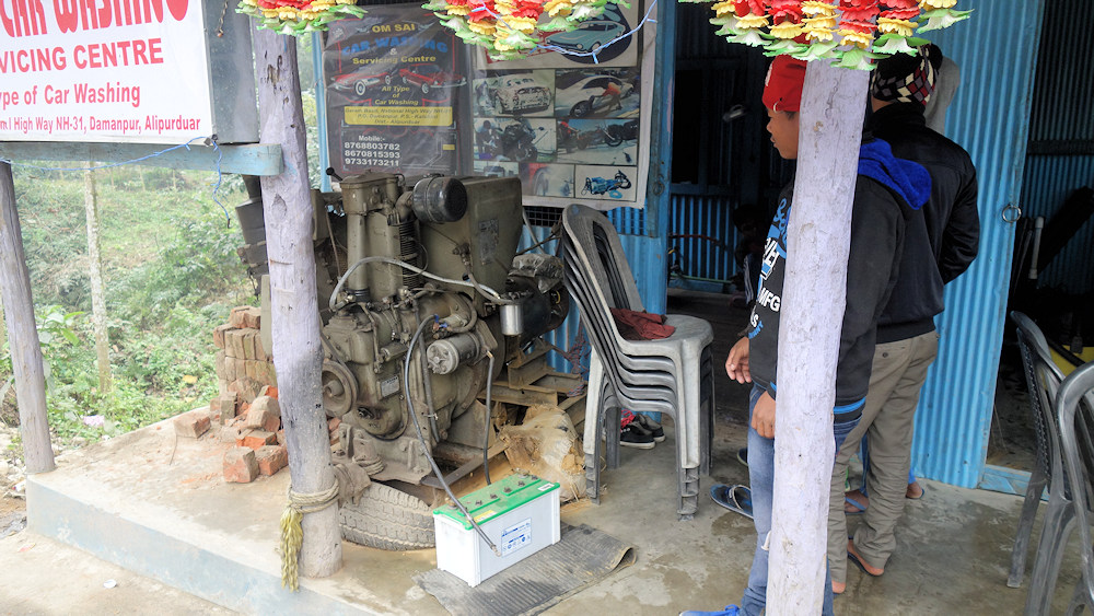 Und als der Strom ausfiel, gab es ja noch ein Notstromaggregat mit einem Motor der Marke Eicher. Das war eine deutsche Landmaschinenfirma, die eine Kooperation mit einem indischen Unternehmen hatte.