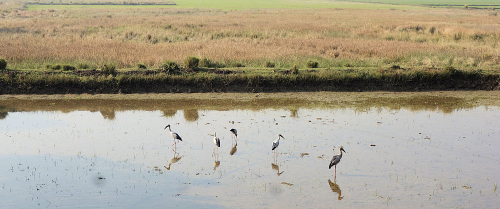 Wir fuhren durch Randgebiete des Chilika Lake, einer Meereslagune, die bekannt ist für ihren Vogelreichtum, insbesondere an Störchen.
