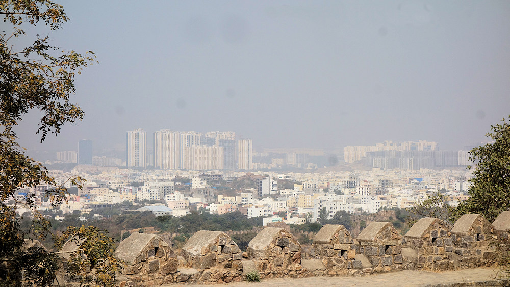 Blick vom Gipfel des Forts auf Cyberabad, dem IT-Zentrum Hyderabads.