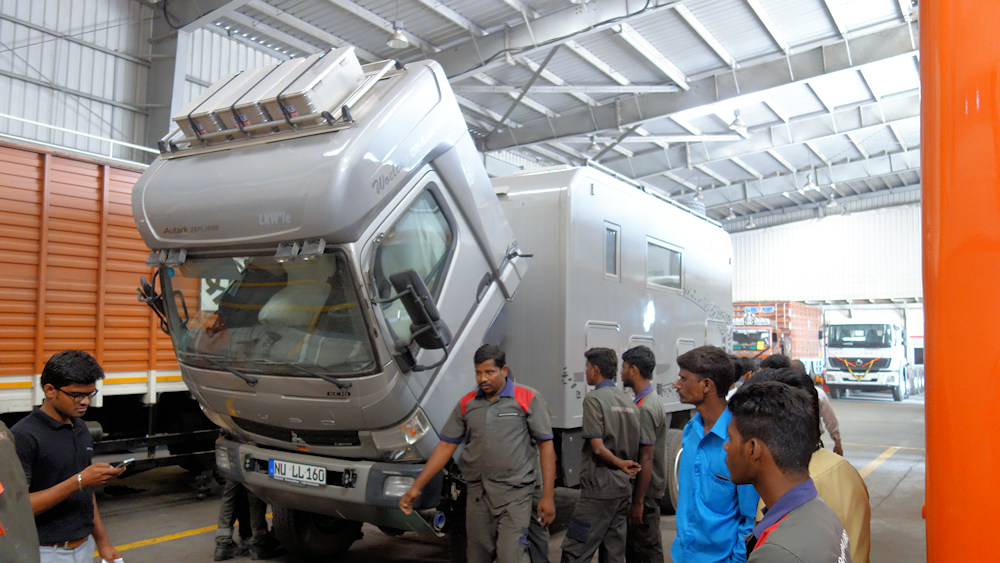 Stets stehen einige Mitarbeiter ums Fahrzeug.
