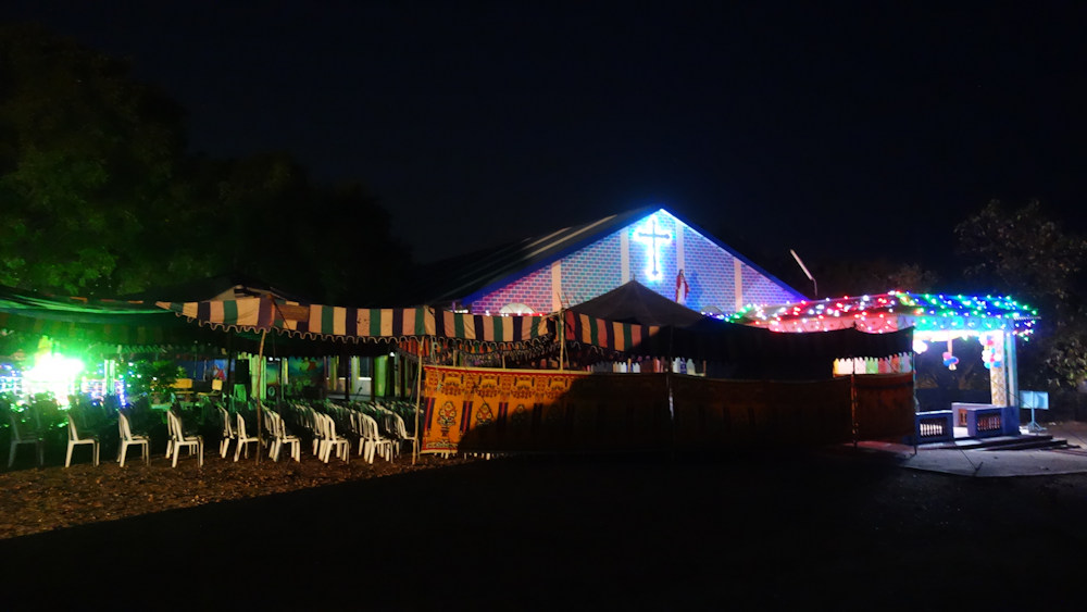 Vor leeren Stühlen setzte heute morgen die Beschallung um 5:30 Uhr ein. Vermutlich um uns zu wecken.