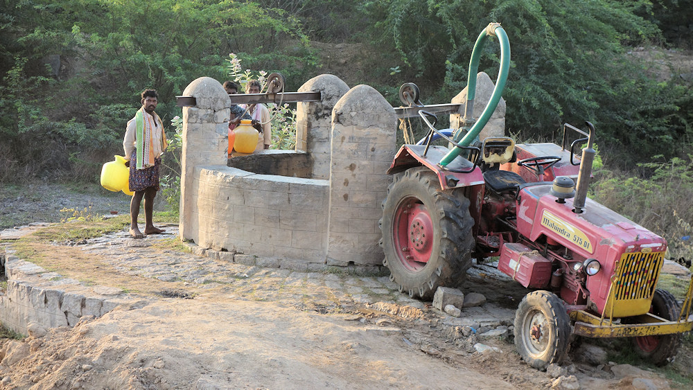 Ausnahmsweise waren heute Männer am Dorfbrunnen zum Wasserholen.