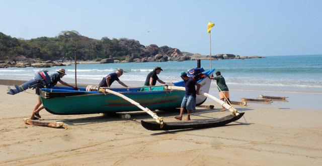 um das Boot ins Wasser zu bringen.