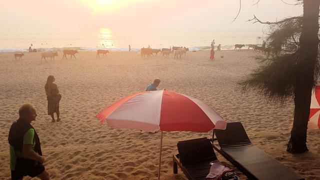 Auch die Kühe machen ihre abendliche Strandrunde.