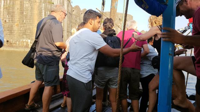 Zum Anlegen müssen wir auf ein kleineres Boot umsteigen.