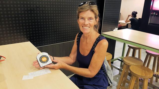 Der McDonalds beim Gate of India in Mumbai bietet mehrere vegetarsiche Varianten und ein modernes Bringsystem an den Tisch.