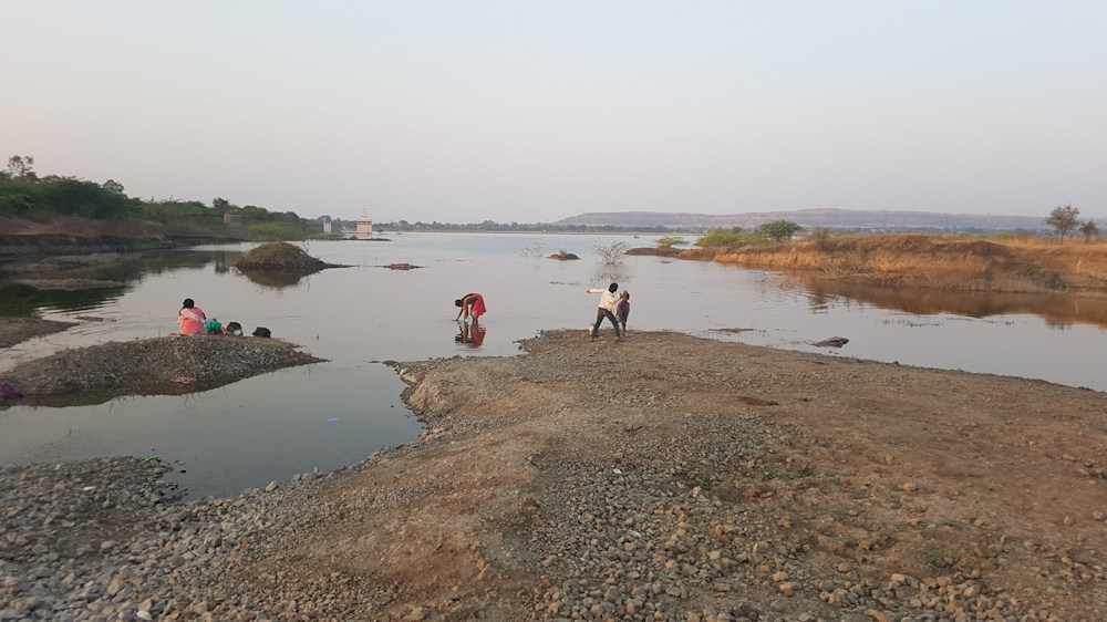 am Stausee, der schon bedenklich niedrigen Wasserstand hat.