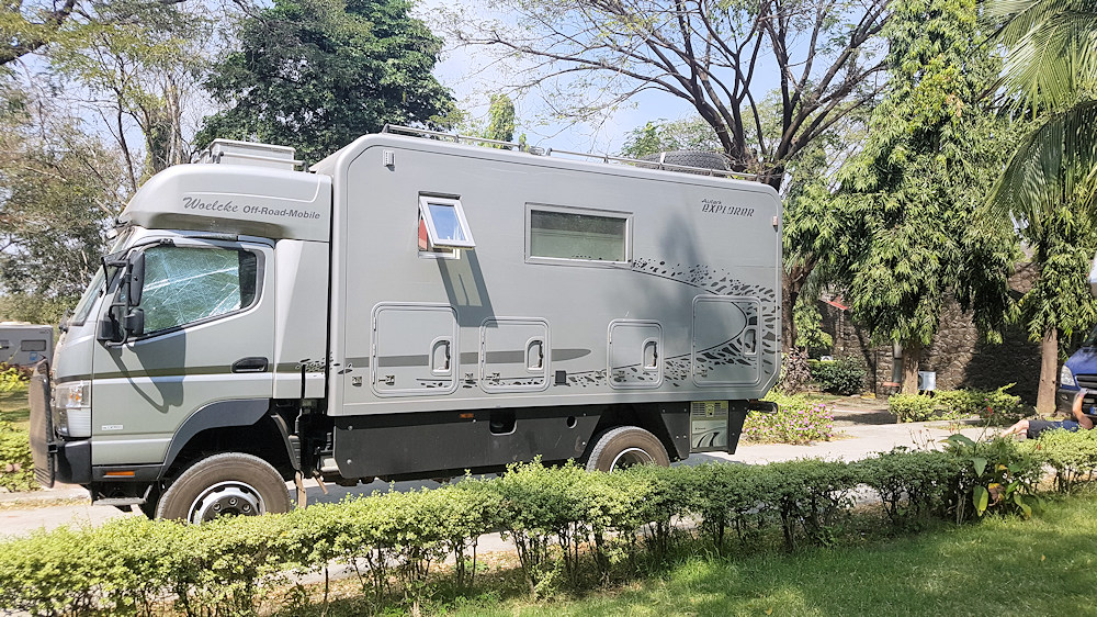 Parkplatz beim Kailas Hotel, ein paar hundert Meter von den Ellora Höhlen entfernt.