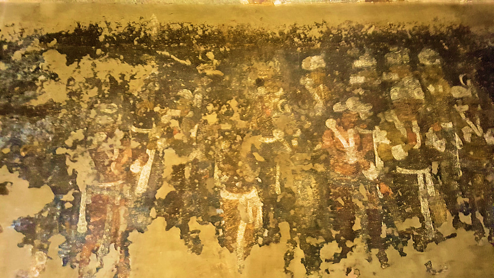Die Wandbemalung gibt der Wissenschaft viele Infomationen über die damalige Kultur. Es werden in der Regel Szenen aus dem Leben Buddhas dargestellt.