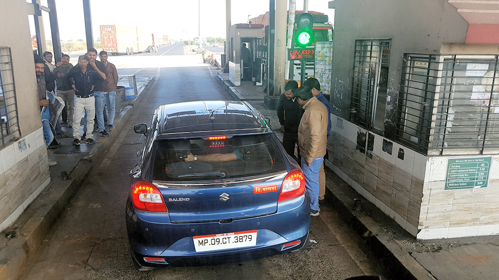 ...diskutieren die Männer an der Mautstation um die richtige Maut.