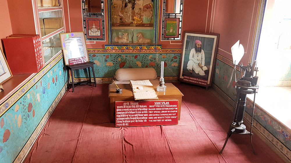 Arbeitszimmer eines Maharanas. Der Ventilator wurde mit einem Sterlingmotor betrieben.