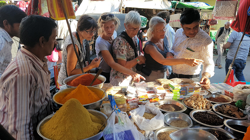 Die Damen lassen sich Gewürzmischungen zusammenstellen.